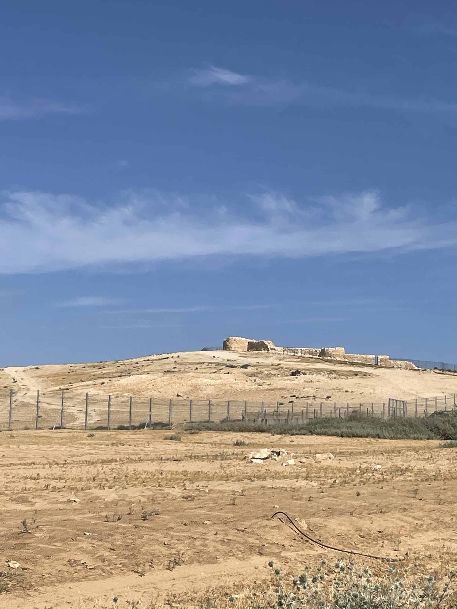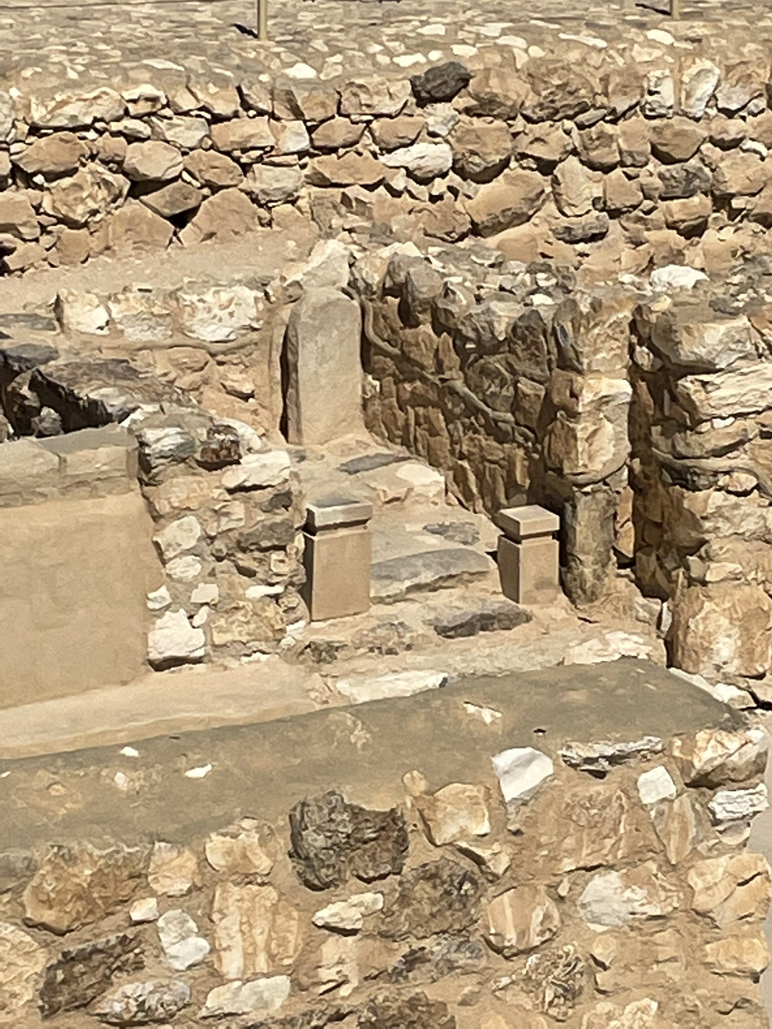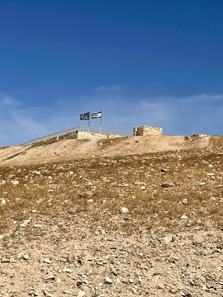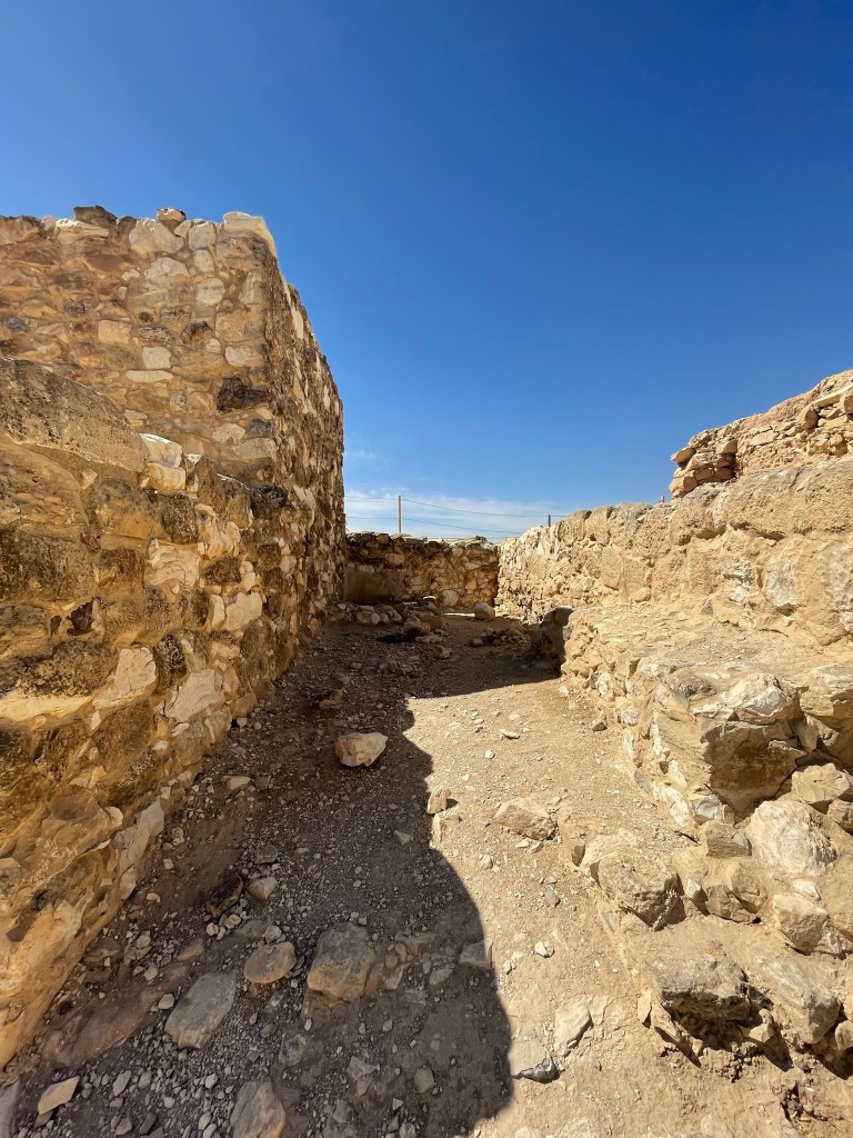 We started in Beersheva and then made our way to the east to Tel Arad, which is located in the eastern Negev. Its location is strategically located on the route which led to both Sinai and Transjordan. Tel Arad was the site of a Canaanite city from the early Bronze Age. The city was a as large as 10 hectares at its peak. The Israelites occupied the site during the Iron Age, building a fortress on the northern portion of the city. Within the fortress, the excavators found a Judahite temple (a cultic site) with two standing stones and two incense altars. The fortress and the lower city both have water systems to collect rain water run off.