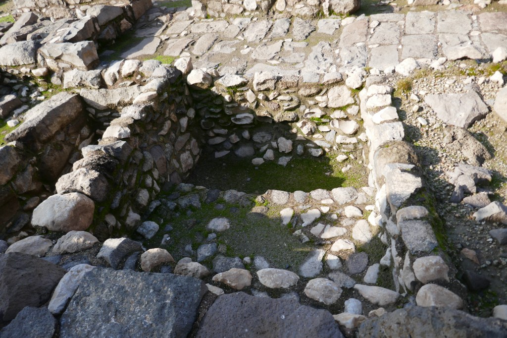 In the photos below, you will notice that much was built from the local rock–Basalt (volcanic rock). The area nearby was covered with a layer of volcanic rock, so that was the common rock used for building.